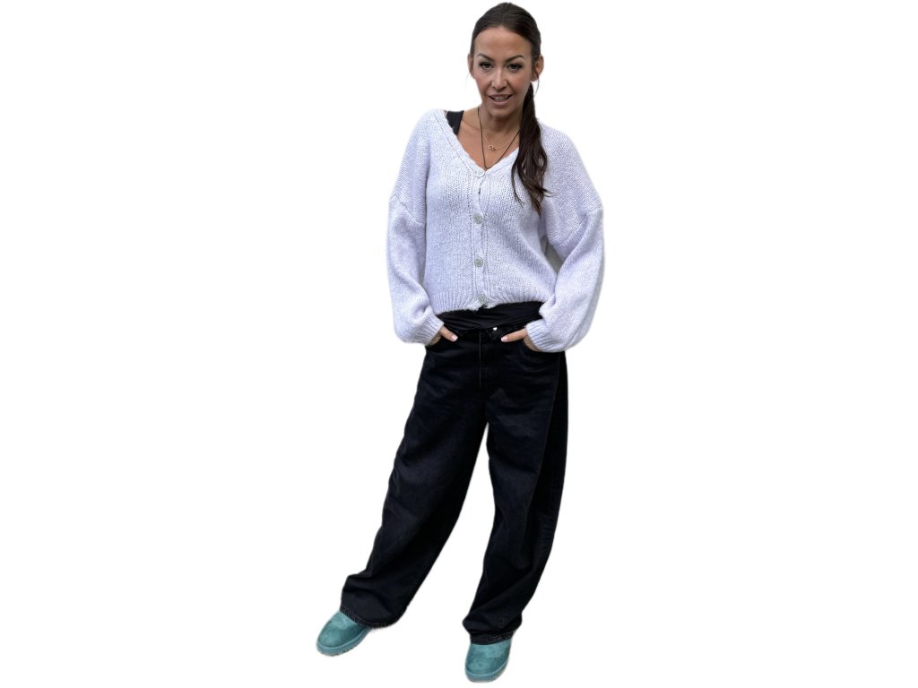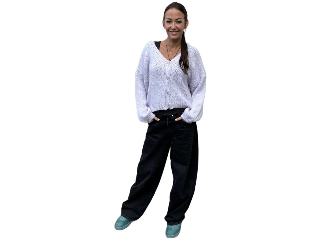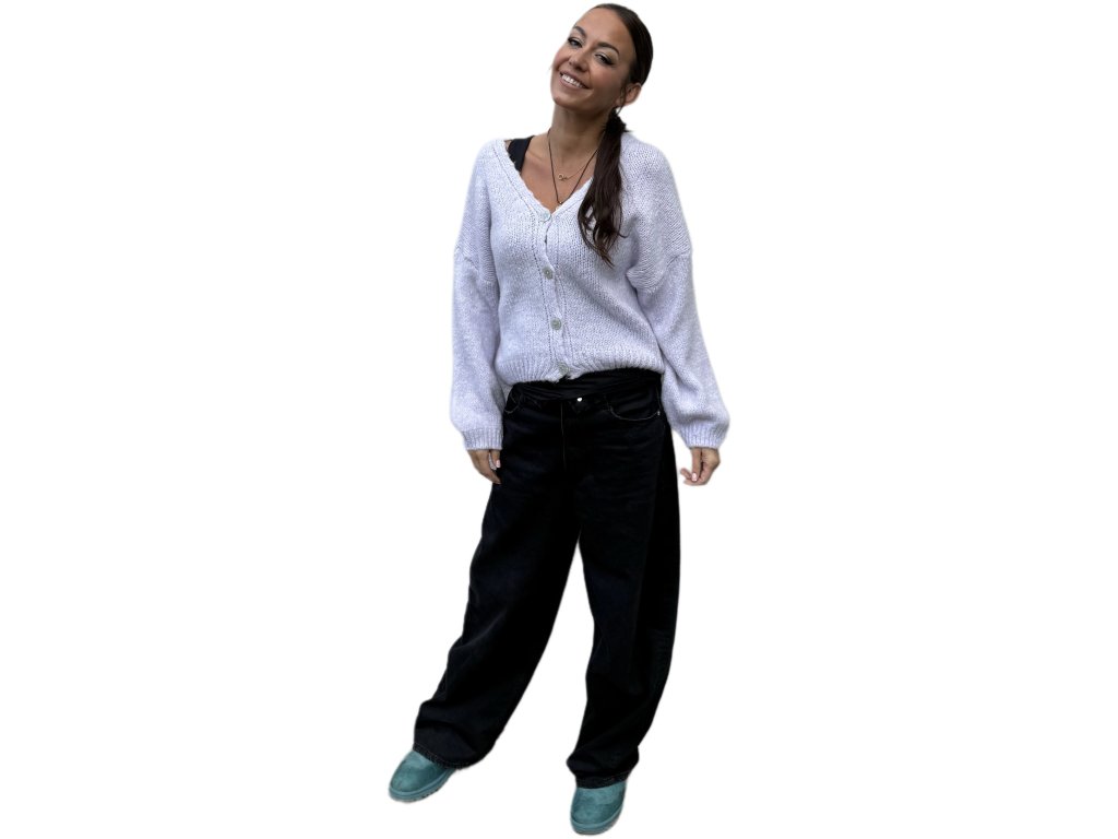✨ Detail: knoflíky z perleťového efektu, měkký úplet, volný střih.