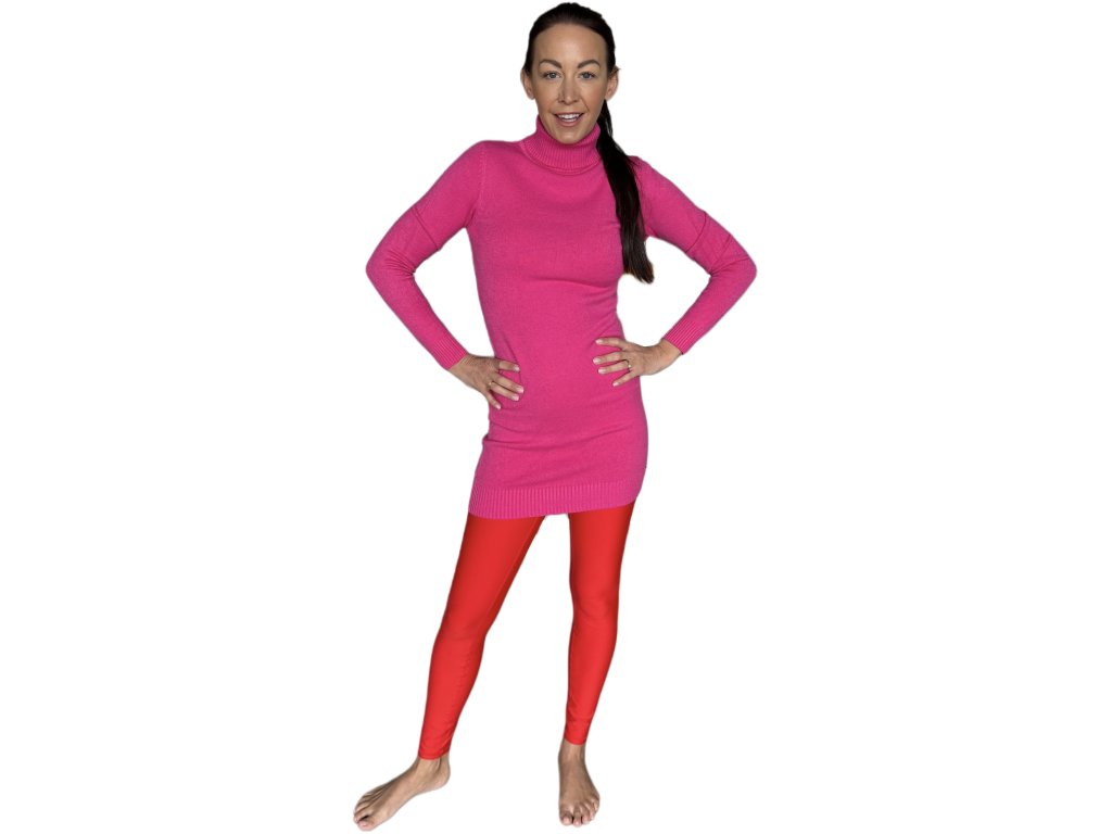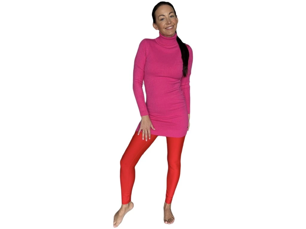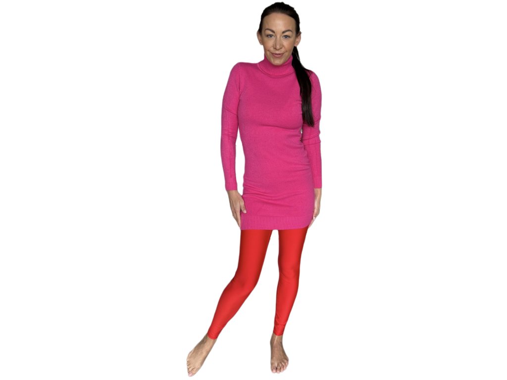 Dlouhý úpletový svetr v sytě růžové barvě s rolákem. Přiléhavý střih krásně zvýrazní siluetu a díky pružnému materiálu poskytne maximální pohodlí po celý den.