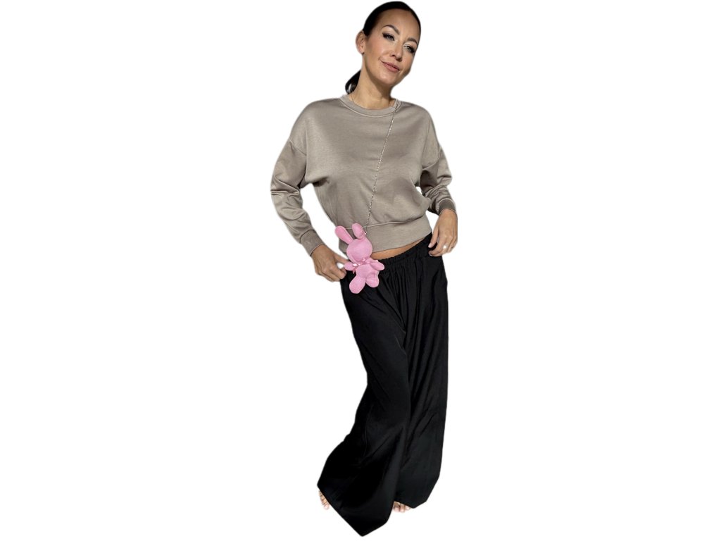 Minimalistická mikina doplněná originálním plyšovým medvídkem na řetízku. Stylový detail dodává outfitu hravost a jedinečný charakter.