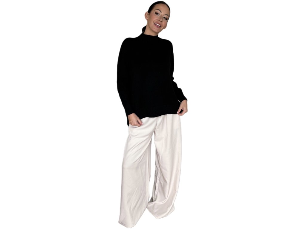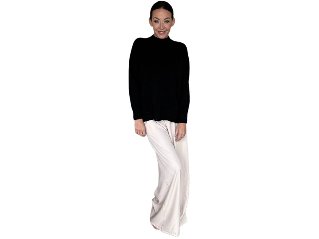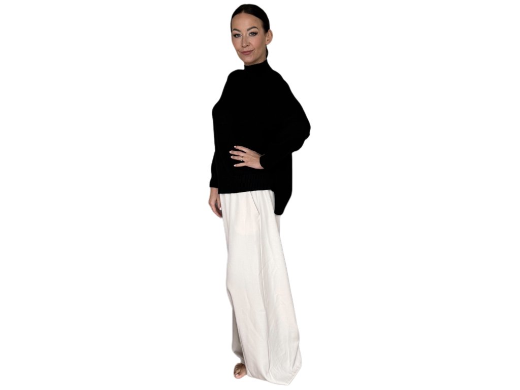 Svetr „Soft Touch“ je dokonalým spojením pohodlí a jednoduché elegance. Vyznačuje se jemným rolákem, volnějším střihem a pružnými lemy na rukávech i spodním okraji, které zajišťují komfort při nošení. Hebce působící materiál a černá barva umožňují snadné kombinování s kalhotami, sukní i dalšími vrstvami oblečení. Tento svetr je ideální volbou pro každodenní nošení — ať už do práce, na procházku nebo pro chvíle odpočinku — kdy chceš vypada
