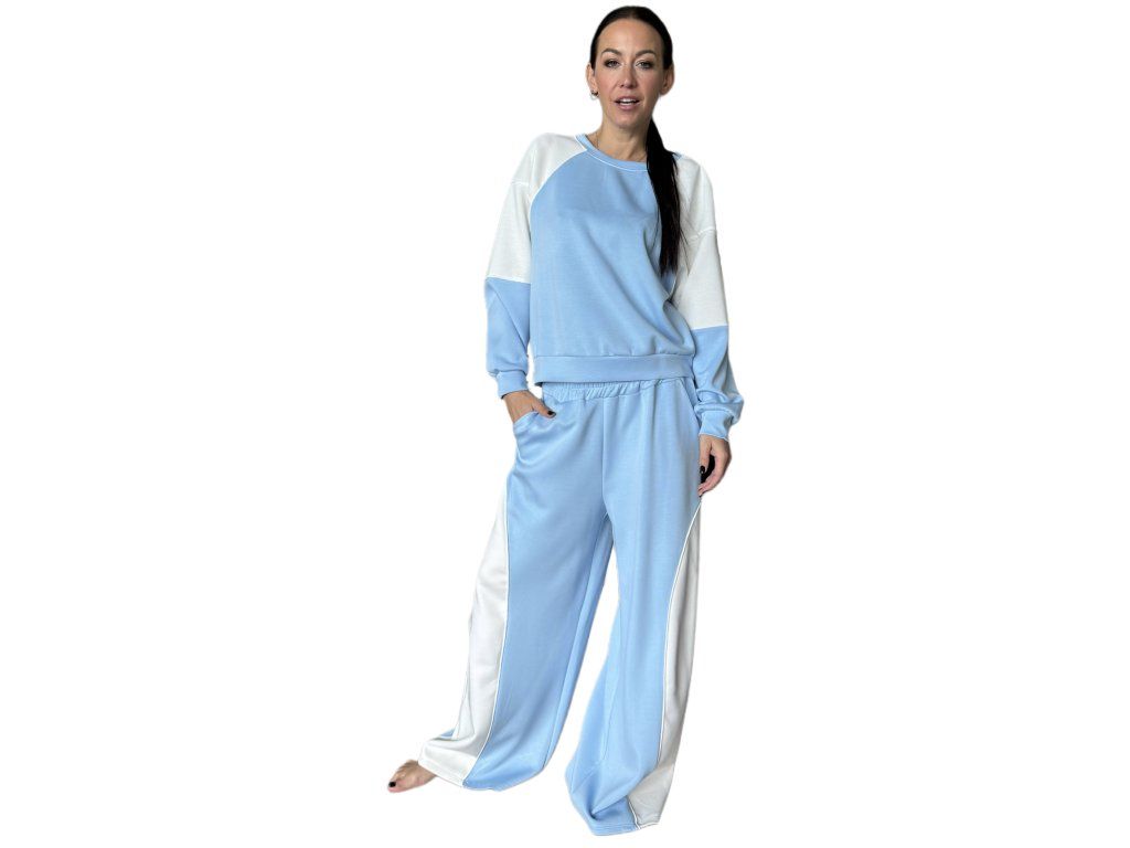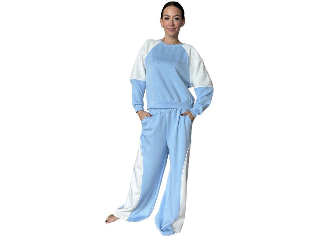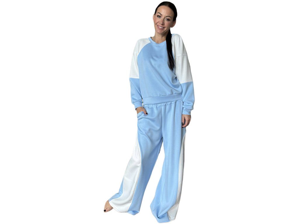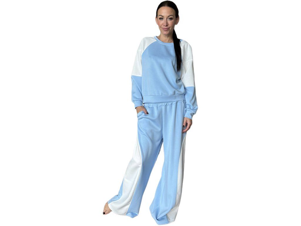 Stylový dvoubarevný komplet spojuje pohodlí s moderním designem. Kontrastní provedení a uvolněný střih z něj dělají ideální volbu pro každodenní nošení i chvíle odpočinku.